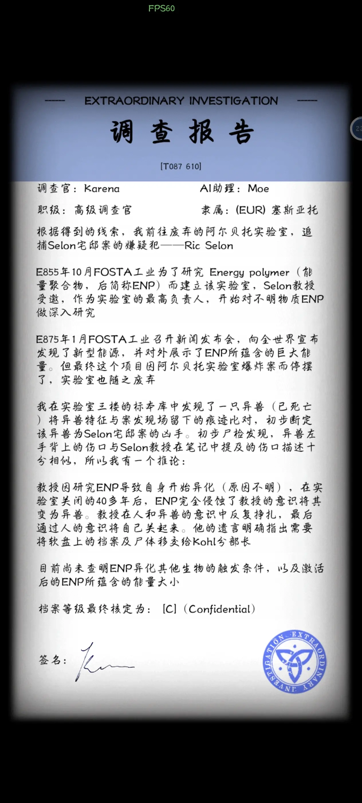 这是一款略带挑战性的恐怖悬疑推理剧情游戏,玩家将以助力者M和调查官K的身份,对地处偏远山角的实验基地展开深入调查。游戏拥有丰富的故事剧情章节,每个章节中都设有烧脑的小游戏供玩家探索解谜,而每推进一个章节,玩家都会离事件的真相更近一步。值得一提的是,部分场景图的设计确实颇为阴森,那些异兽标本的模样看起来还有点像哥布林。