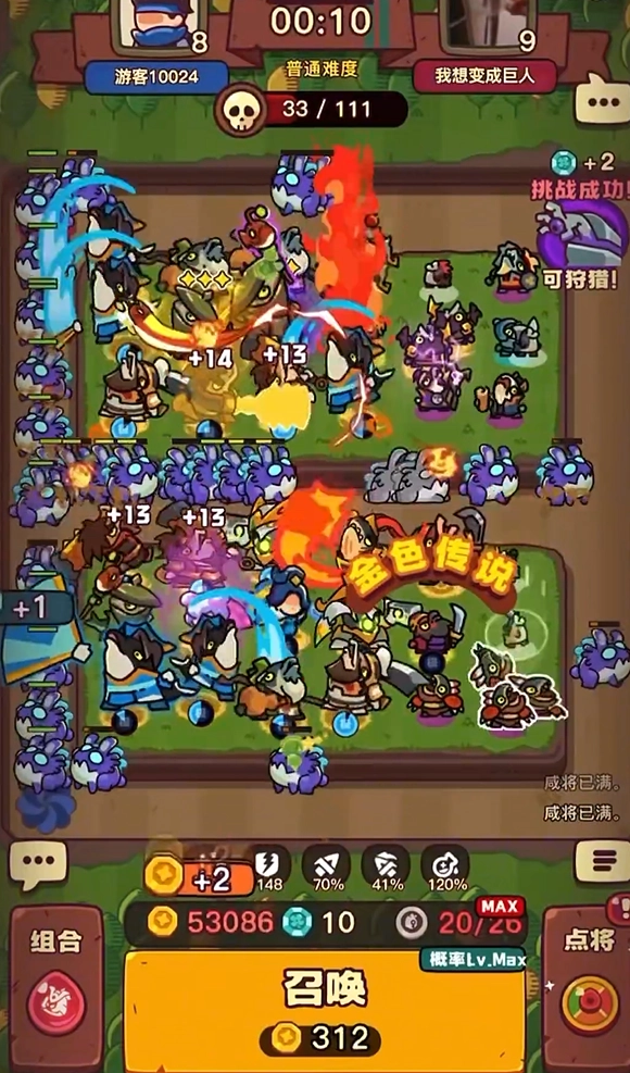 英雄融合:把英雄融合起来能增强他们的能力,融合后的英雄会更具威力。