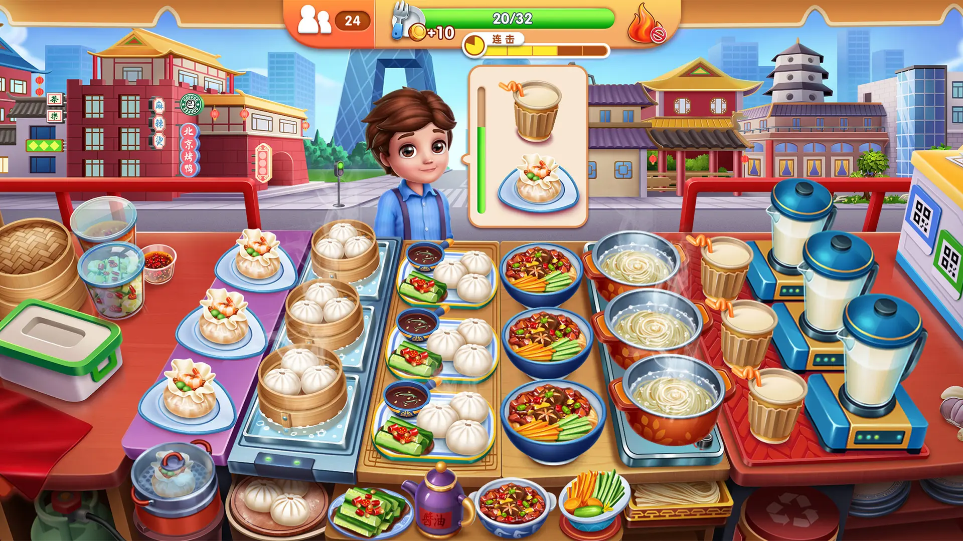 风味美食街是一款卡通风格的休闲模拟经营游戏,玩家可以在这里经营一家专属餐厅。餐厅的食物类型不受限制,凭借丰富的食材,你能够烹饪出各式各样的美食。游戏中,玩家需要依据顾客的不同需求制作相应美食,从而获取利润,进而升级餐厅设备,让餐厅不断发展壮大。