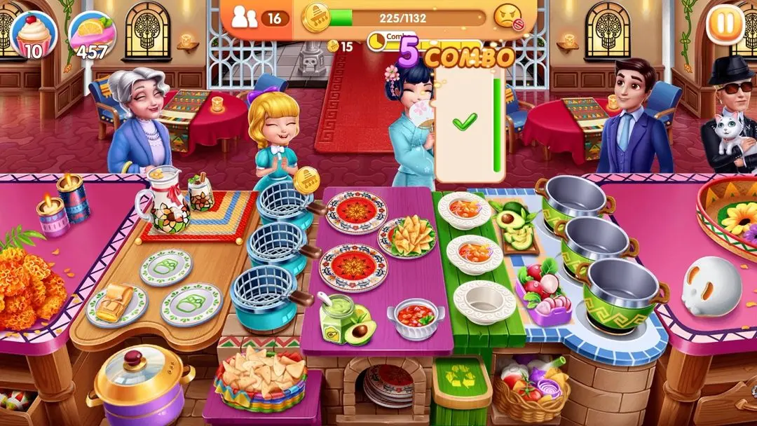 针对不同的通关要求,有不一样的攻略技巧~像营业金币,就可以等顾客多一些的时候,直接五连击上菜,就能拿到连击奖励金币;要是想获得好评,就可以提前把菜做好,顾客刚下单,我们就能马上上菜!
