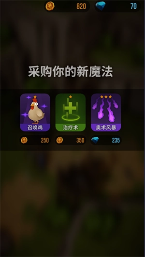 在攒够足够多的金币后,去商店购买全新的强力魔法,用来击败敌人。