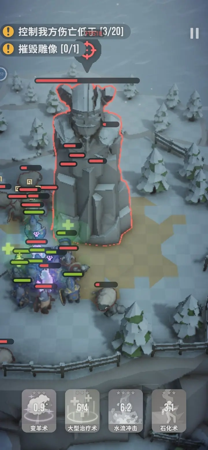 最终的雕像会对敌方释放强化效果,敌方小兵会进入短暂的无敌状态,不过变羊术能直接将其秒杀(石化术无法做到这一点);石化术可在变羊术处于冷却期间使用。