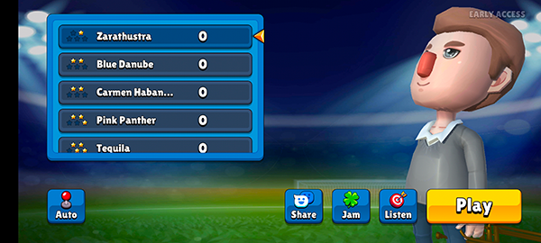 曲目选择:可在左侧菜单栏挑选曲目,星级代表曲目难度,星级数量越多,曲目难度相应越高。