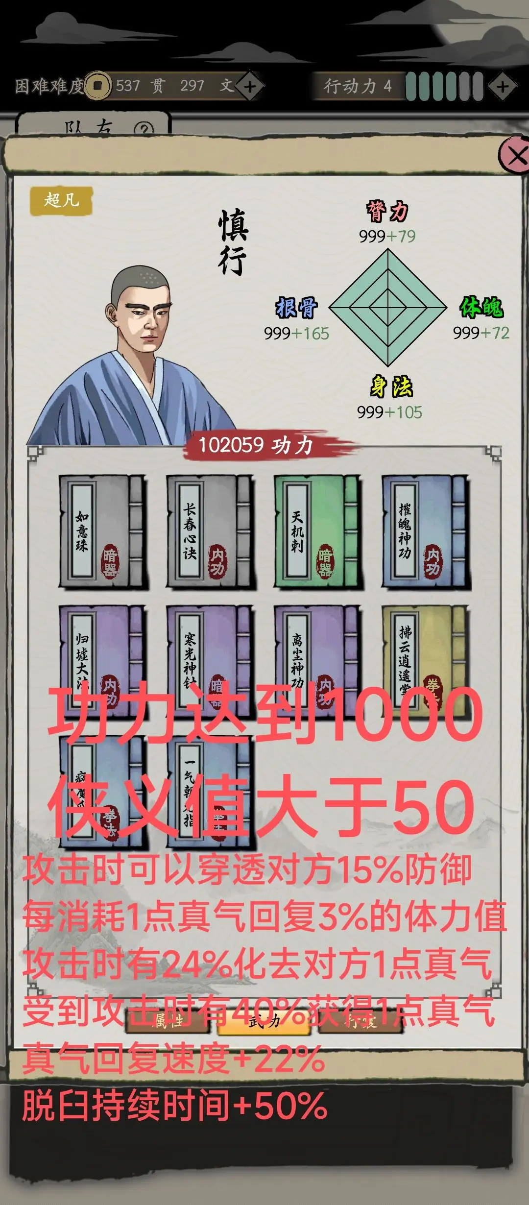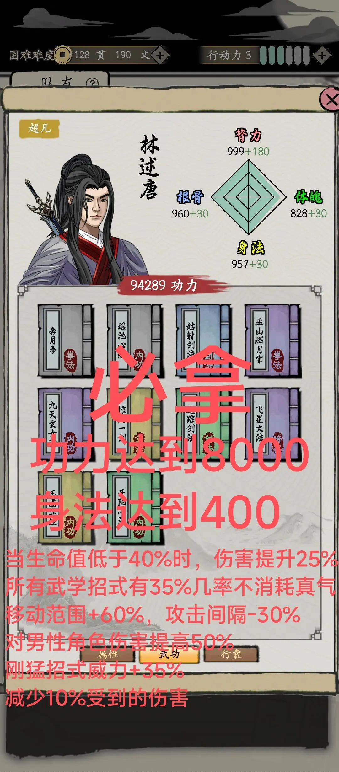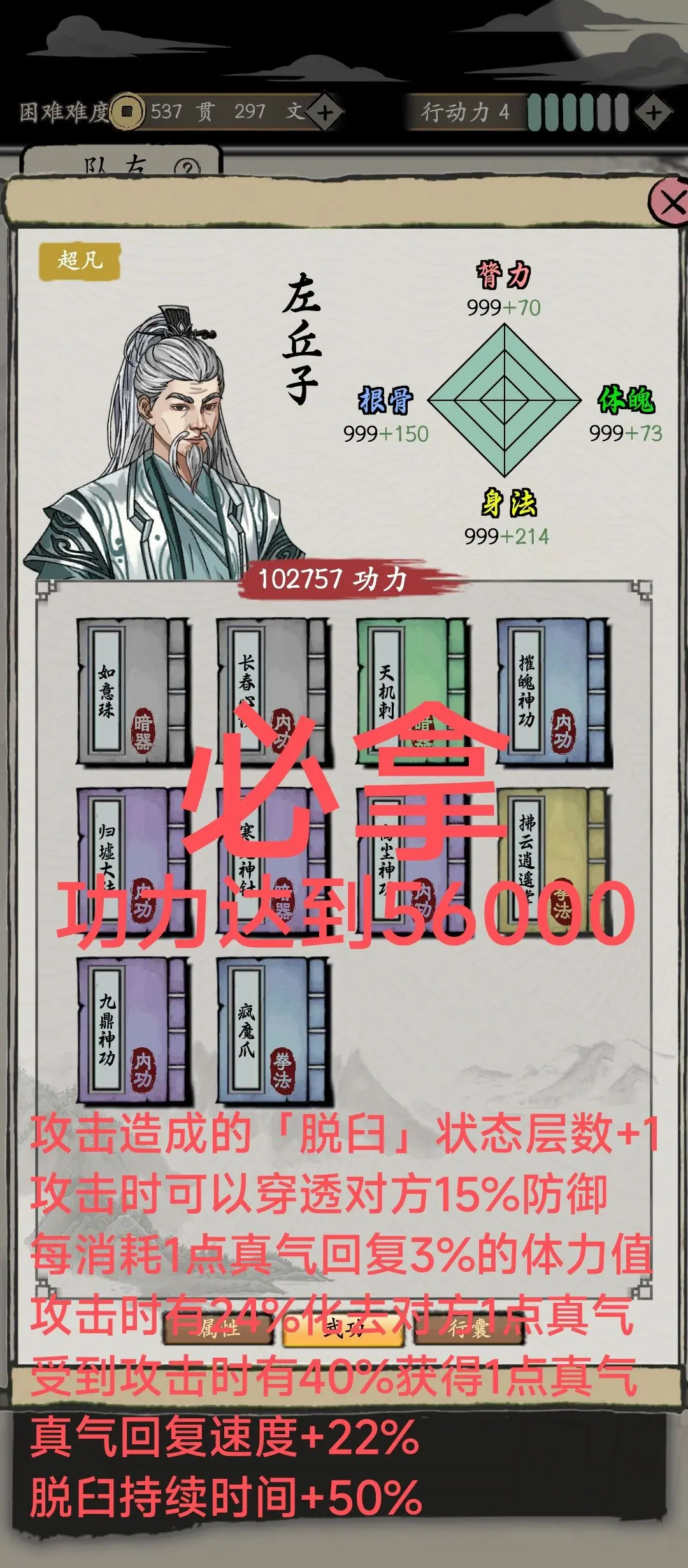 玄阴词条(所有武学招式有35%几率不消耗真气)