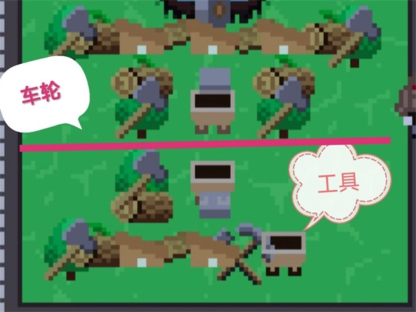 前期用流水线运送工具和车轮会比较麻烦,但这个问题应该能解决,先过渡一下。这里是解锁手推车之后的工厂模块。