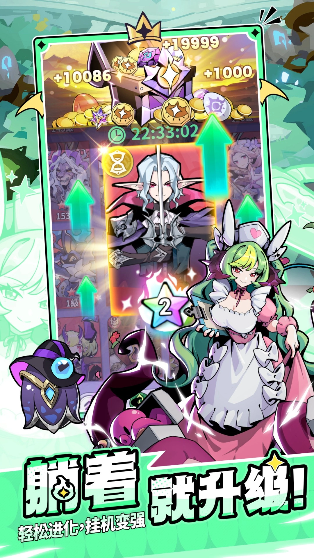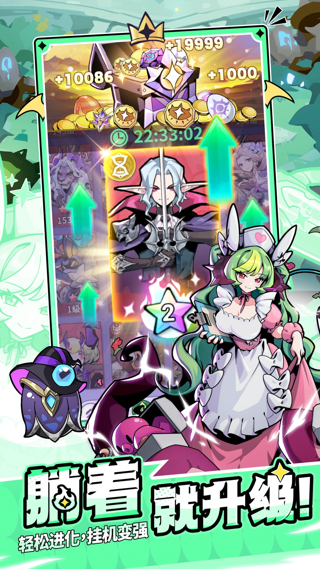 指尖轻触,战力飙升!布置你的魔物军团,它们会自动挑战勇者获取经验升级。增强实力,挂机也轻松!