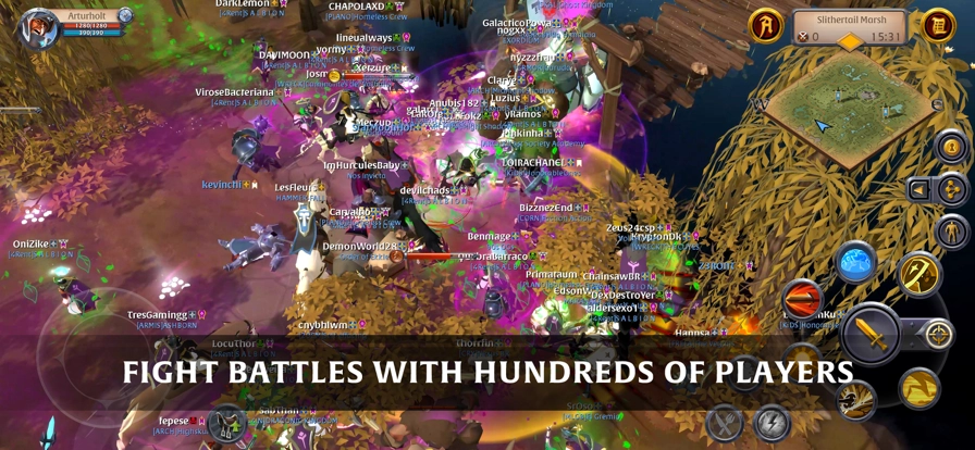 PVP玩法:在阿尔比恩的广袤世界里,与顶尖斗士一较高下,感受热血沸腾的PVP对抗。发挥你的策略与团队配合,令敌人望而生畏,唯有真正的强者方能笑到最后。