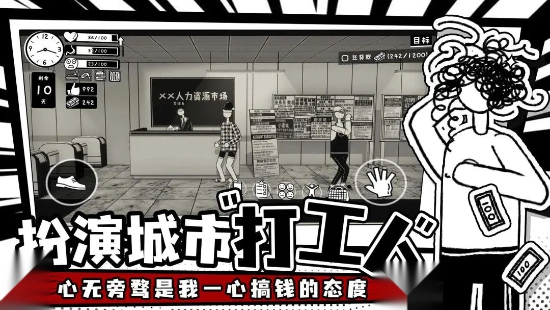 打工方式:游戏里设置了伐木工、搬运工等多种不同的打工途径。玩家要依据自身当下的状态以及实际需求,挑选出适合自己的工作。
