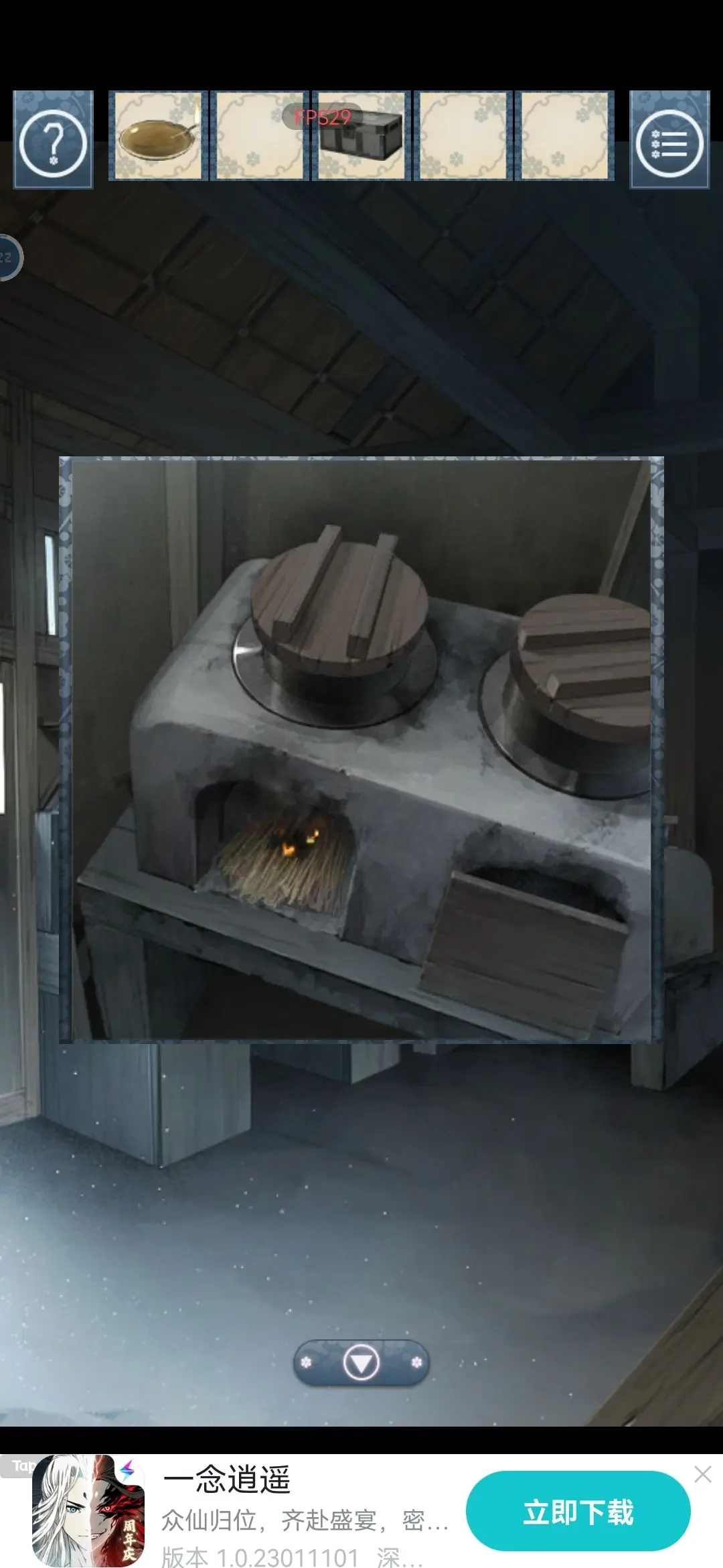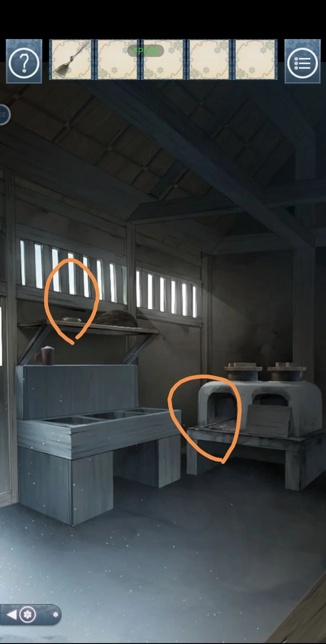 8 拿到打火石后前往厨房,把拆扫帚得到的干草放进灶台,用打火石点燃干草,接着点亮油灯。