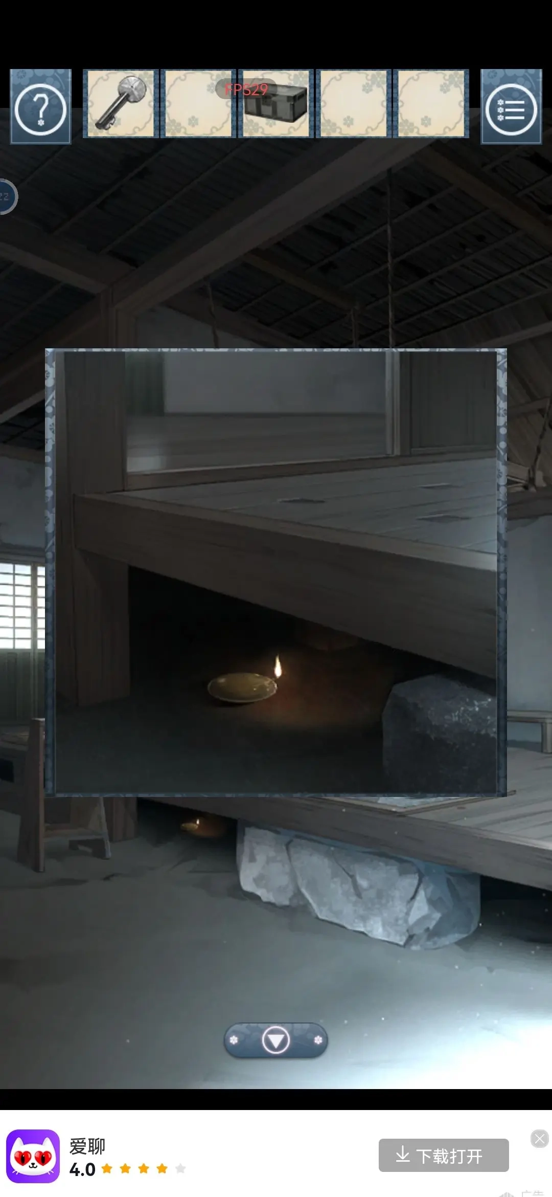9 回到屋子,从床下把钥匙摸出来。