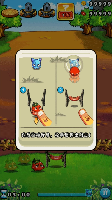 进入游戏后,玩法十分简单,玩家只需用手指拉动弹弓即可完成射击操作。