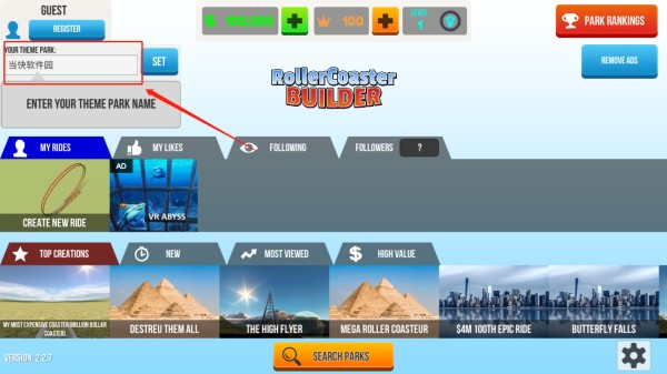 游戏进入,右上方可选择为自己的游乐场命名;