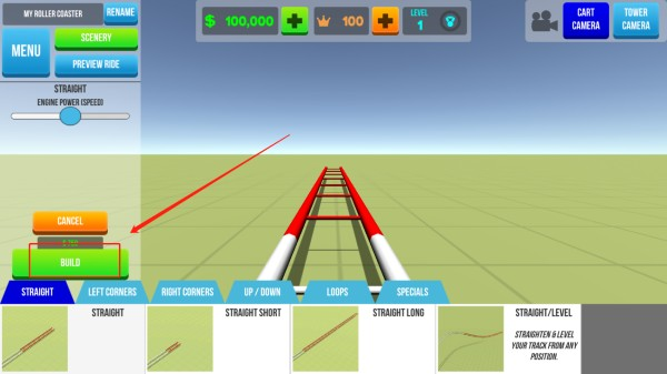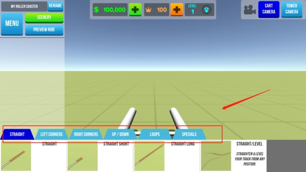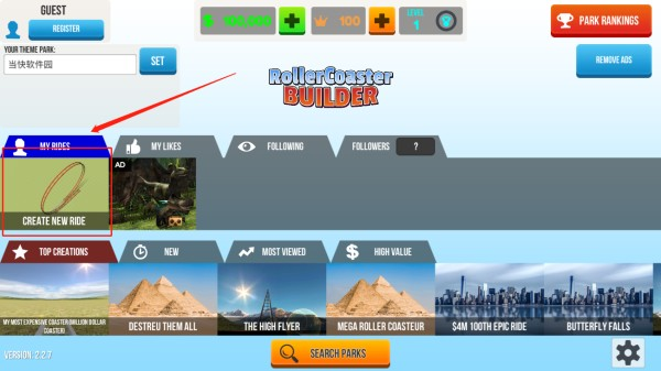 点击图示位置可以创建新的过山车;