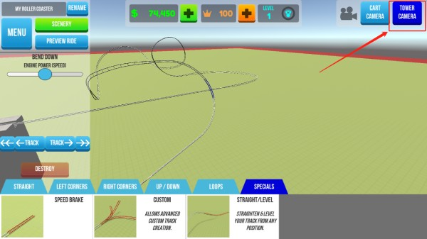 点击右上方图示位置,可切换搭建视角,方便进行过山车的搭建。