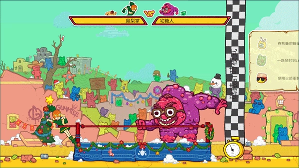 《野牛复仇记》又名Burrito Bison,是一款兼具幽默趣味与挑战的休闲游戏。故事的主角是名叫野牛小子的摔跤手,他在超市购物时,意外被吸入一个通往糖果世界的蓝色袋子。当他醒来,发现自己被困在擂台上的牢笼里,眼前是一群抗议的小熊人。愤怒的野牛小子决心复仇,他要冲破糖果世界的重重阻碍,回到原来的超市。