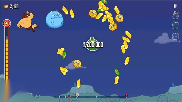 技能升级机制:玩家在游戏里收集到的金币,可用于提升野牛小子的各项技能,比如增加可发射的火箭数量、降低落地时的速度损耗等。