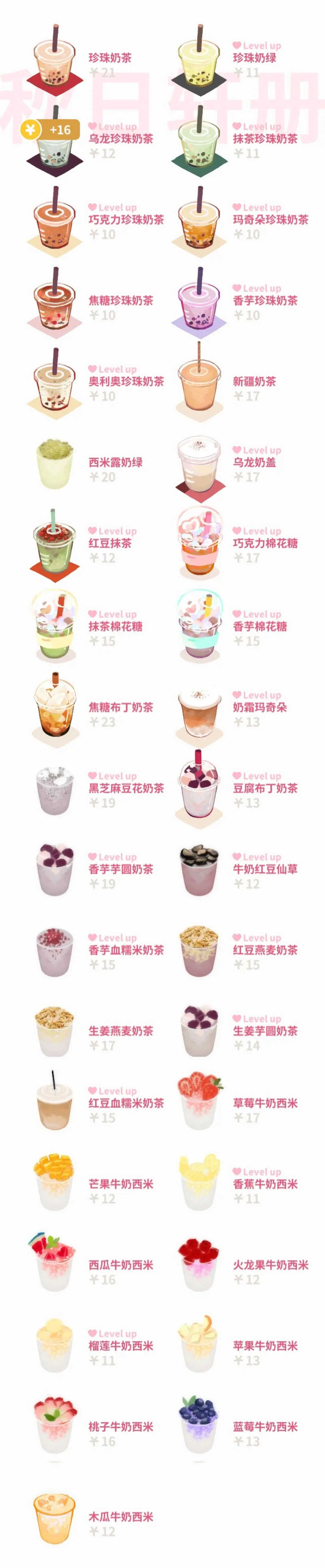 多种奶茶冰品配方,玩家可以自由探索。