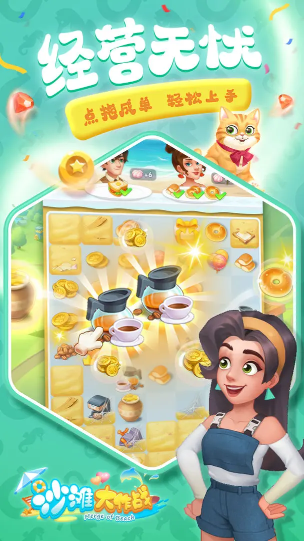 沙滩大作战是一款自由度拉满的模拟经营游戏,玩家能在专属沙滩上尽情享受消除玩法的乐趣!在游戏里,你需要经营一片沙滩,接待前来度假的各类顾客,为他们提供贴心服务和丰富饮食,努力提升梦幻沙滩餐厅的营业额。同时,你还要关注每位顾客的需求,亲手制作每一份餐品!