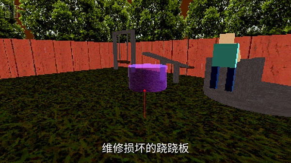 前往公园内部的跷跷板,图示紫色光标处。