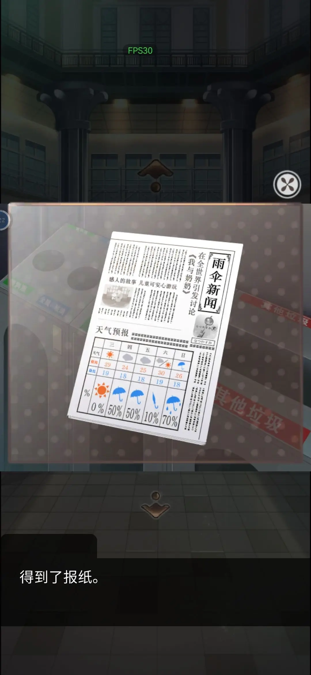 至站外左转,点击垃圾桶,获得报纸,得知对应图案