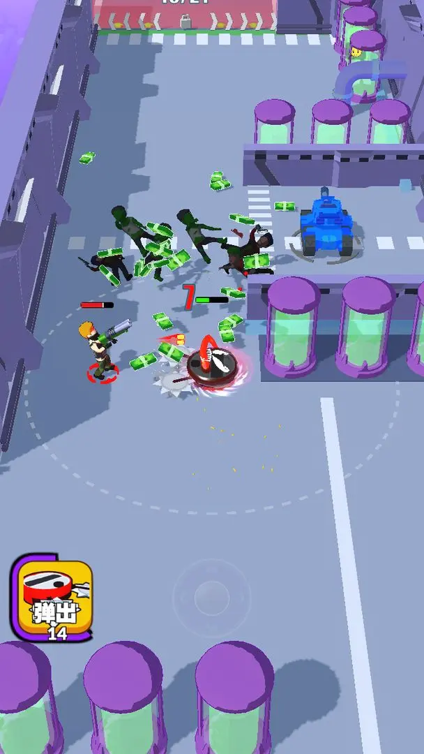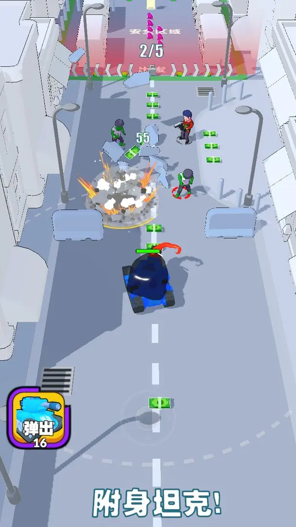 坦克驾驶玩法中,玩家能够操控坦克,摧毁房屋建筑,发射炮弹攻击敌人,亲身感受极具冲击力的战斗场景。