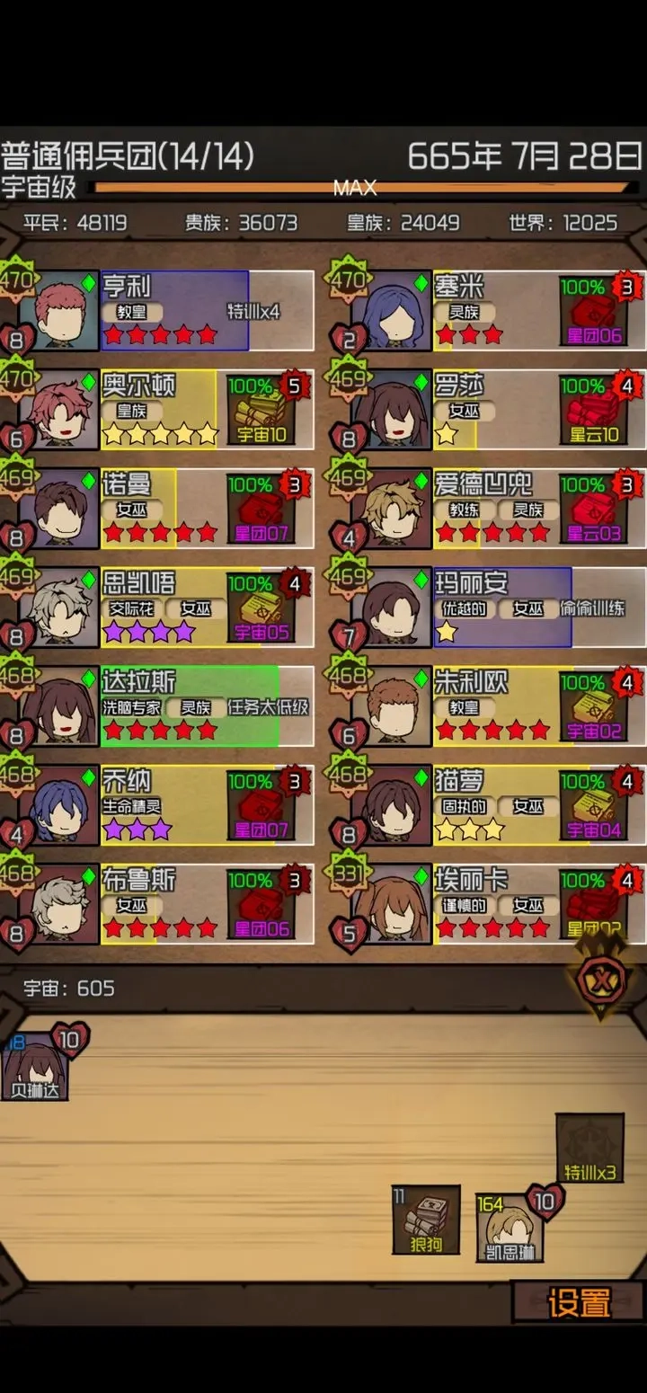通关的逻辑是:洗脑专家负责招人,女巫的作用是加血,好战者则是提升等级。