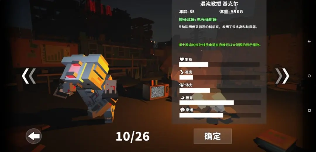 教授,被动技能表面上看着挺强,实际用起来却很坑。手电筒变成了头顶的红外线装置,开启后附近怪物身上会发红光,可关键是——手电筒原本的照明功能完全没了!这就导致很容易卡在建筑物里被怪物围殴致死。这个被动比较适合那些晚上喜欢躲起来的玩家,毕竟饱食度消耗慢,不容易饿死,但也意味着彻底失去了夜晚作战的能力。