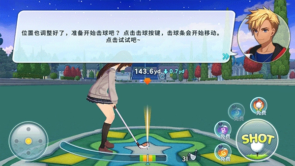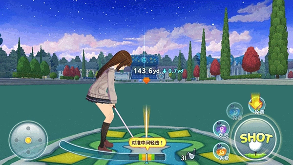 推杆也是一样,点击击球按键,球就会向洞杯方向滚动