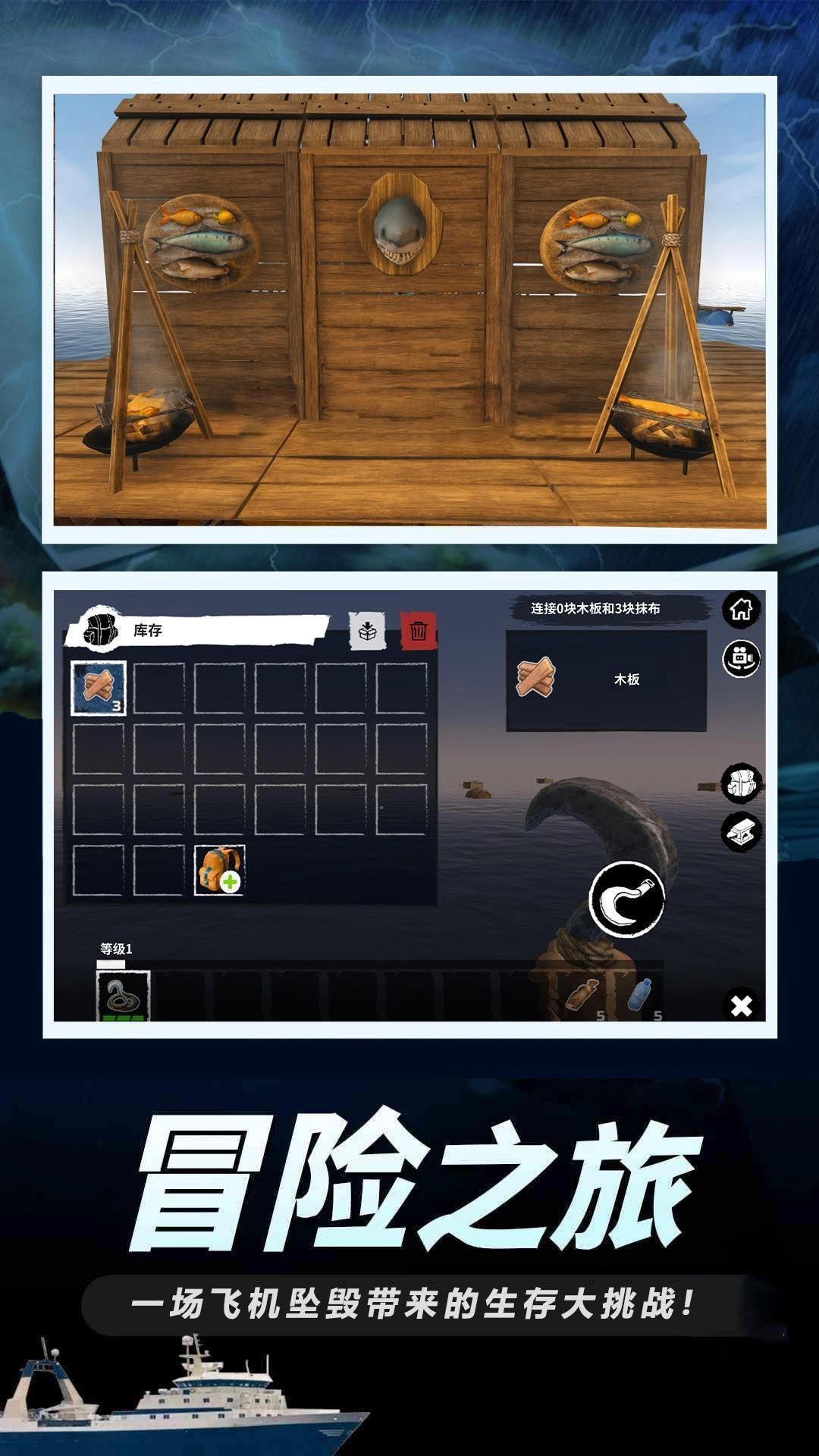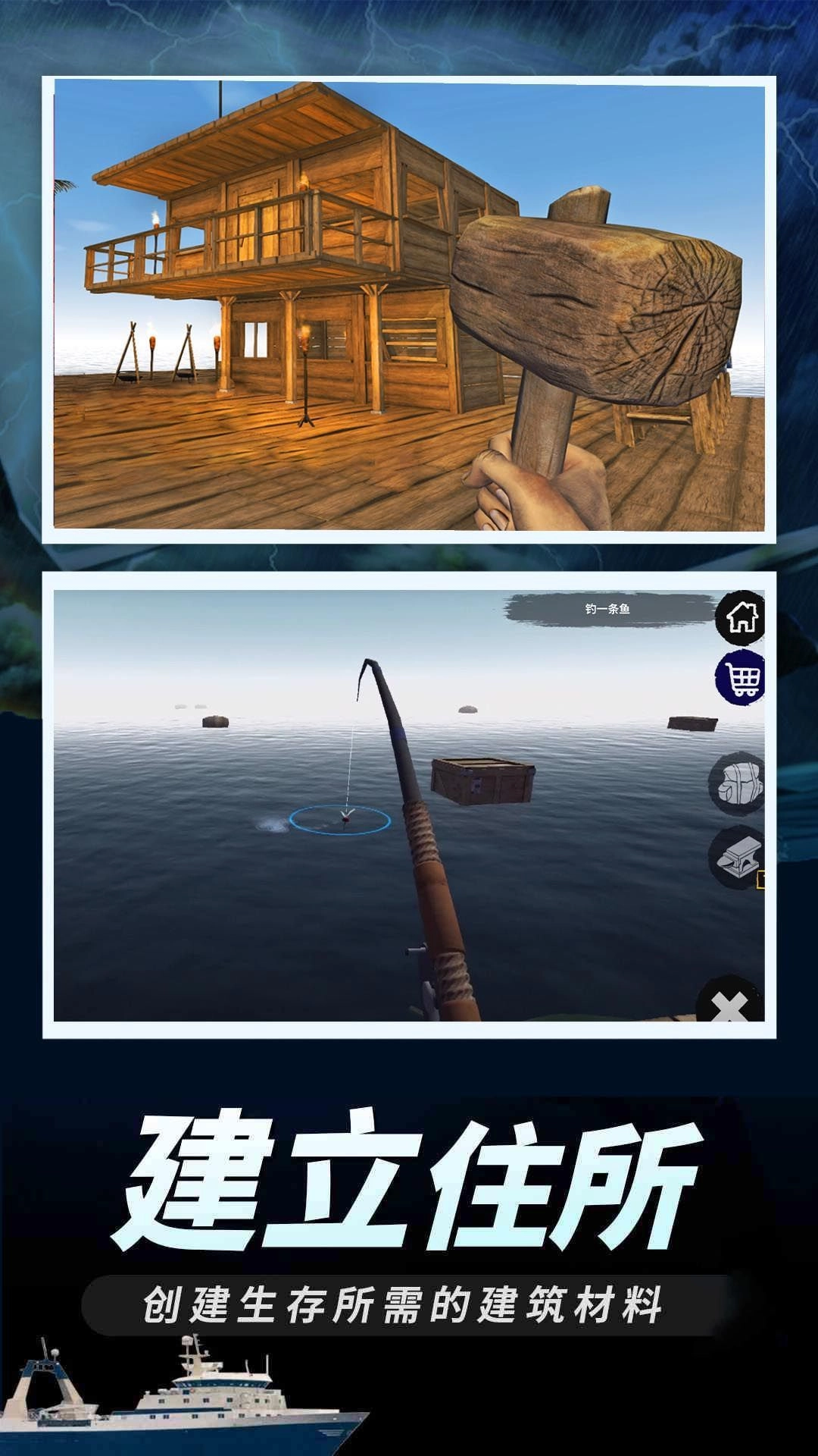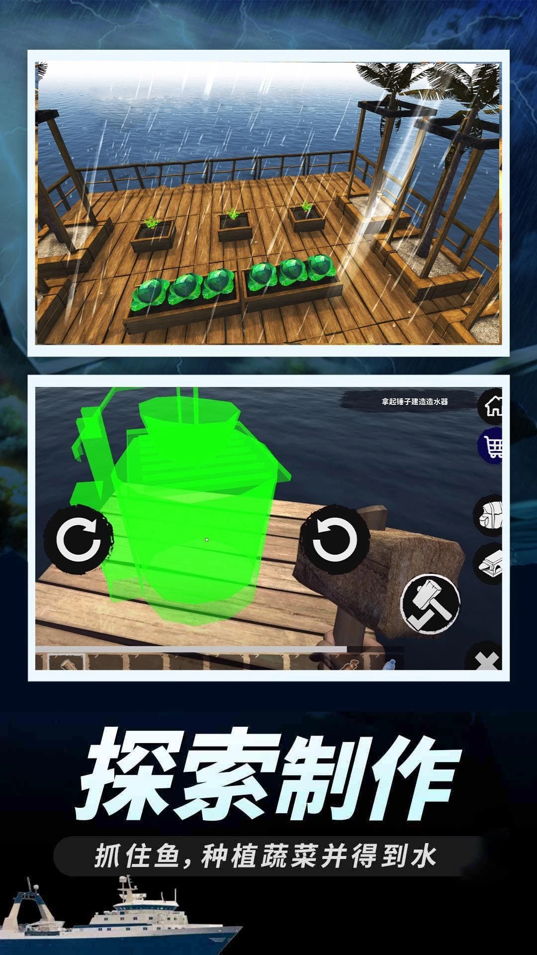 在木筏上玩游戏,靠自己的努力得到所需的生活物资。