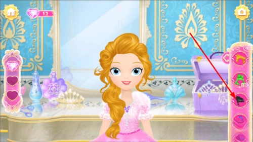 2. 抵达乔斯王子所在的国家后,首要之事便是打理发型,点击右侧的物品为她梳理头发。