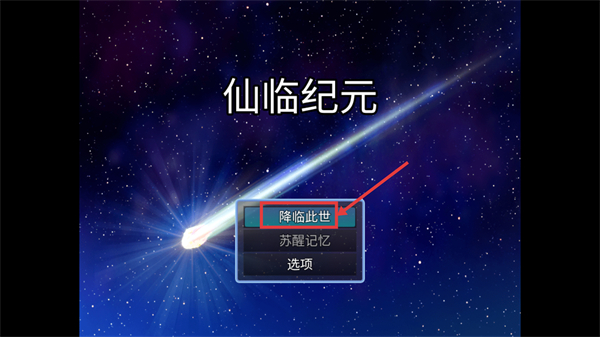 进入《仙临纪元》后,选择“降临此世”选项即可开启新角色的创建流程,这是进入游戏的初始步骤。