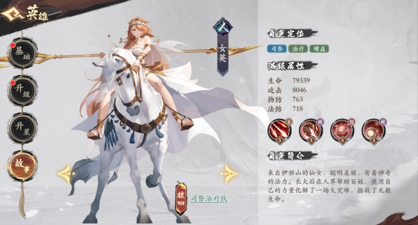 小结:女英是新手阶段首充6元即可获得的英雄,她兼具治疗与增伤双重能力,无疑是必练的选择。在前期到中期的开荒过程中,有这样一位英雄能提供很大助力。培养时建议优先提升她的星级和攻击力,这样既能增强全队的伤害输出,也能提高治疗量。