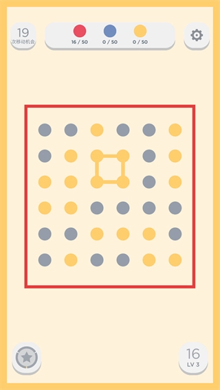 当连接起中间的【黄色-圆点】后,场上所有颜色相同的小点就会被消除。