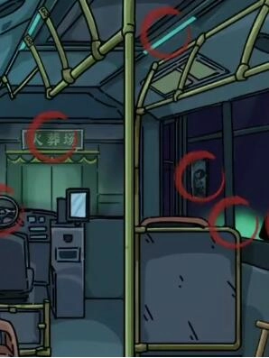 玩家进入游戏后,需找出公交车的诡异之处:转动的方向盘、显示为火葬场的到站提示、幽暗的车内灯光、遗留在车厢里的手提包、点击后视镜会出现的恐怖洋娃娃、车窗外的影子以及诡异绿光。