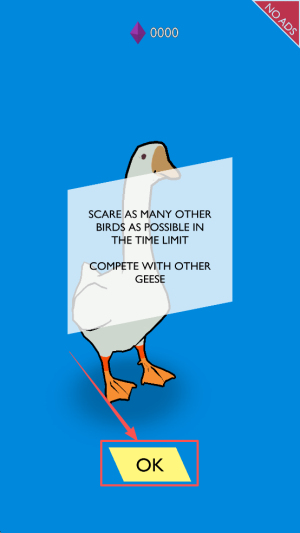 查看任务目标:阅读“在限定时间内尽可能驱赶更多鸟类,并和其他大鹅展开竞争”这一任务,然后点击“OK”按钮完成确认。