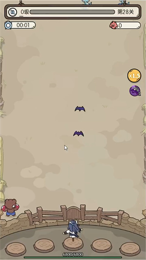 选好角色后即可进入关卡战斗,当敌人靠近时,角色会自动释放技能发起攻击。