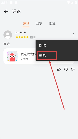 展开操作菜单后,选择【删除】选项,即可将这条评论从自己的评论列表中移除。
