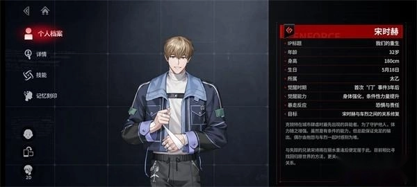 背景:克锐特横行期间最早觉醒的异能者,能力为体力强化,初衷是守护他人;在与失踪已久的兄弟宋诗雨重逢后,他将更多精力放在修复宋诗雨和车烈之间的关系上。