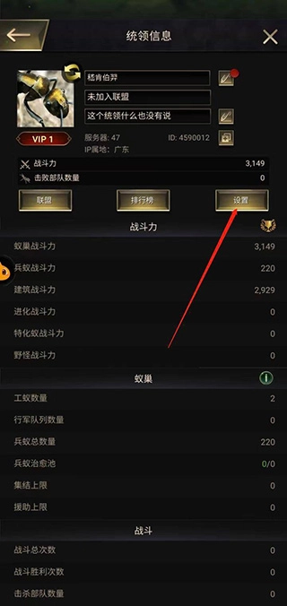 进入游戏后,点击主界面上方的战斗力选项,即可进入统领信息界面。