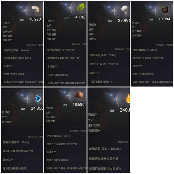 这就可能让各位领主在前期稍不留意,就会出现资源不够用、难以继续发展蚁巢的情况!