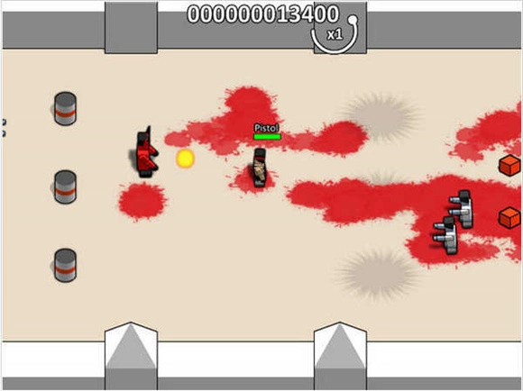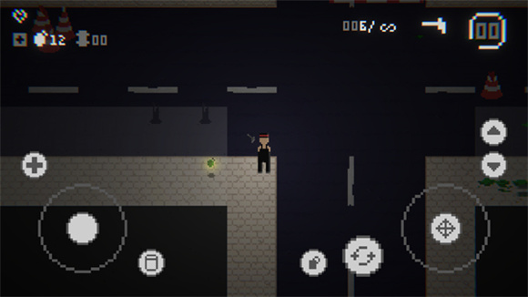 点击屏幕任意位置即可开始游戏,游戏画面如图所示,玩家需要借助手枪来清除地图里的僵尸。