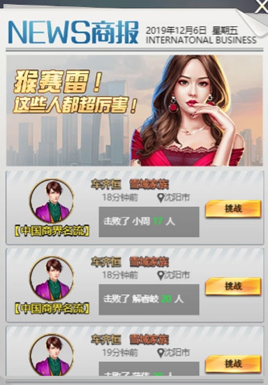 连续击败13人及以上的玩家将登上商报,全服玩家都能向商报上的玩家发起挑战。