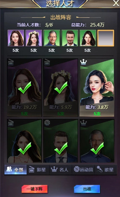 每位人才初始拥有5次出战机会,每小时将补充5次,每日上限为15次。每次商战中,最多可派出6人参与战斗。
