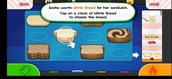 2、先点击制作三明治所需的面包片,接着再依据现有的食物资源来进行搭配。