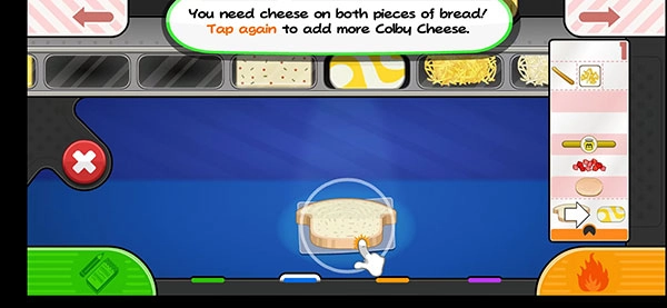 4、选好所需的食物后,点击面包片,食物就会自动放到面包上,最后点击右下方就能制作三明治了。