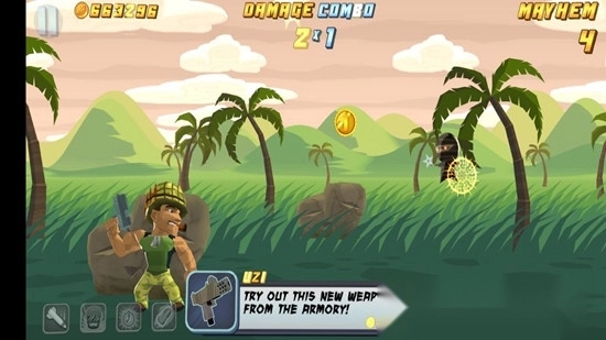 5.游戏里的关卡并非始终要求玩家用手指瞄准敌人头部点击,有些关卡需要玩家持续射击,同时操控主角跳跃躲避障碍。