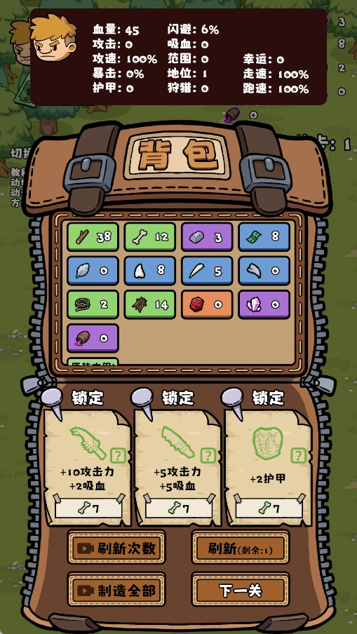 1、把生存与割草玩法结合起来,一直玩到你能体验到通过刷怪获取海量材料的乐趣为止。