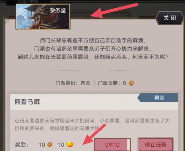 2.宗门杂务堂做任务可以获得贡献和黄金