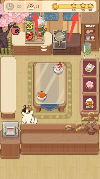6、界面上方会显示剩余的顾客数量,而右上角则呈现游戏通关的星级评定。