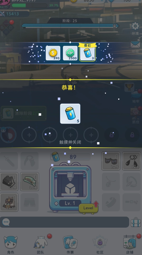 1、通过开箱子获得装备,提升自己的能力
